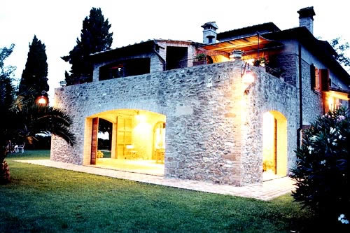 di pianta quadrata con torretta, in giardino cipressi grandi e